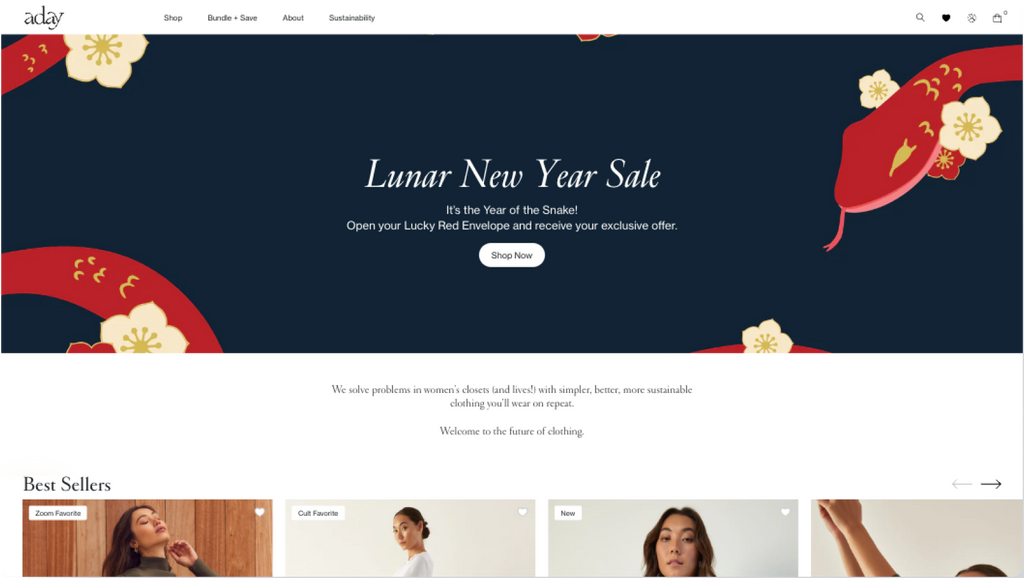 Through our partnership with ADAY, we successfully migrated their platform to Shopify Plus, providing an optimized, mobile-first shopping experience that aligns with the brandās commitment to sustainability and versatility. By focusing on both technical functionality and user-centric design, we helped ADAY deliver a seamless online experience that supports their mission of providing better, fewer products for a sustainable future.