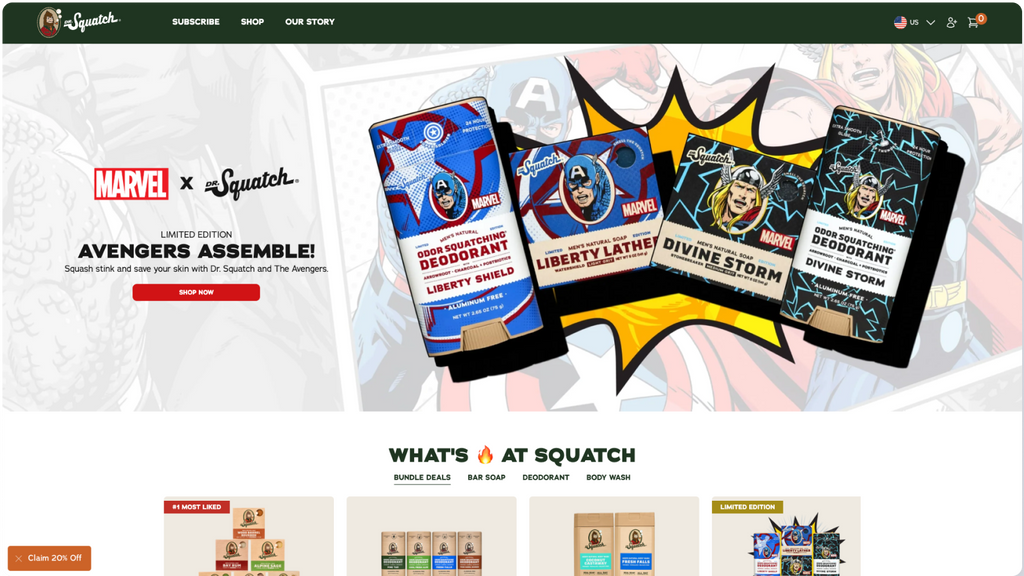 Dr. Squatch 正在重新定义男性护理,提供天然、高品质的产品。该品牌因其独特的全自然产品和强大的客户忠诚度而受到欢迎,专注于提供直接送达消费者的订阅服务,让他们获得自己喜爱的护理必需品。Dr. Squatch 旨在为男性提供高品质、无化学成分的护理解决方案,将有效的产品与引人入胜的品牌体验相结合。